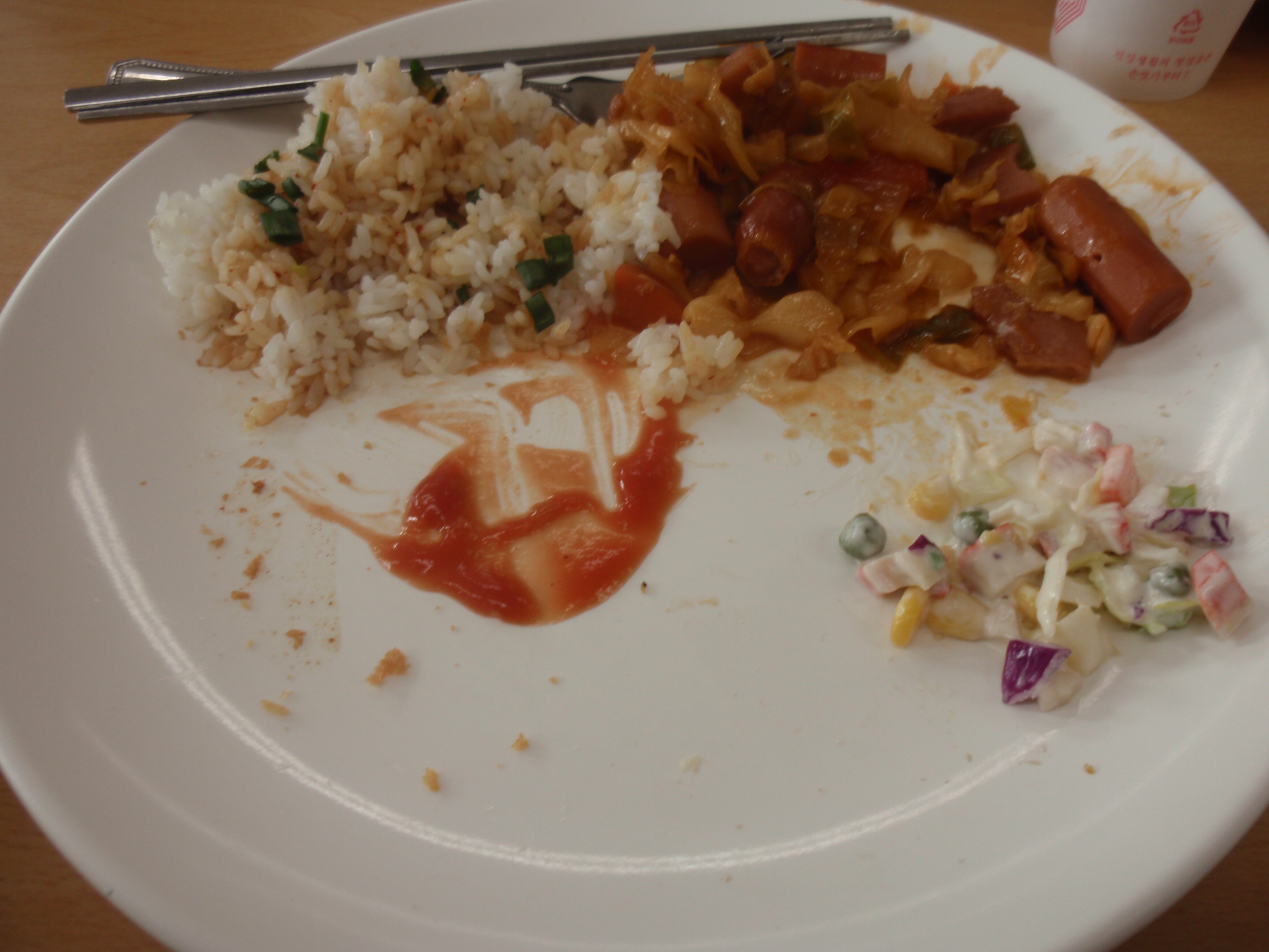 After our chest xrays we were given orange juice and a small snack, then we all went back to the dorm for lunch. The pictures below are of my lunch… before and after I ate. Needless to say, I wasn’t in love with the cafeteria food.