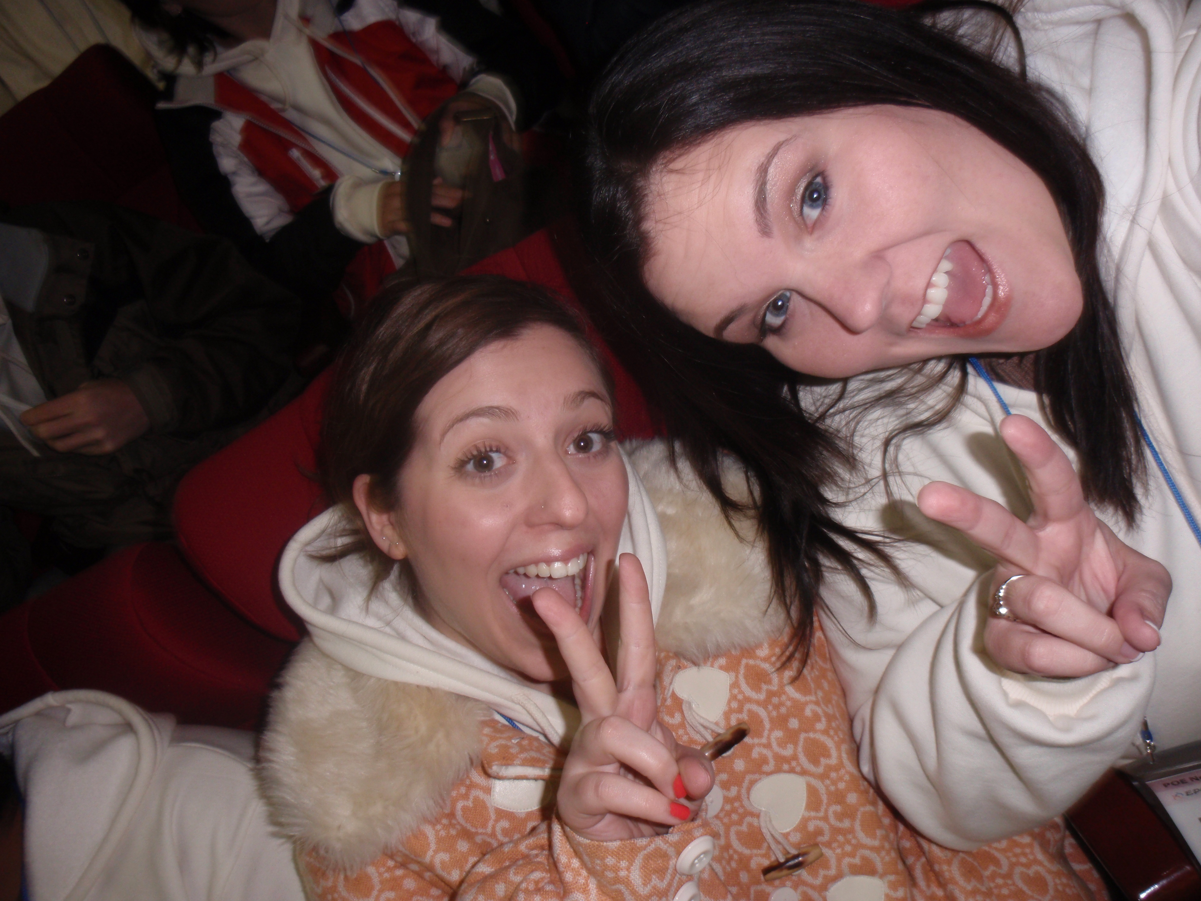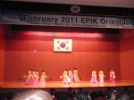 After lunch we had the opening ceremony, which was great. The first picture below is a picture I took as everyone was walking from the dorm to the auditorium. We were asked to wear our new EPIK hoodie sweatshirts to the opening ceremony. I sat by Beth & Megan and we took our first pictures doing the very typical Korean picture pose.