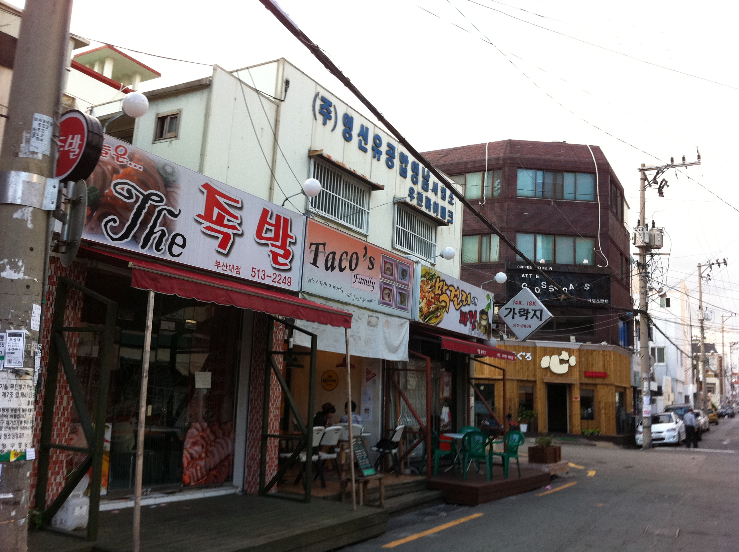 I went to dinner with JuHye on Tuesday night. We ate at a Mexican food restaurant near Pusan National University (PNU) called Taco’s Family. We had chips and salsa as a starter and JuHye had enchiladas and I had a beef chimichanga. The food wasn’t amazing, but he weather was perfect. I love eating dinner on a patio with a cool breeze blowing through.