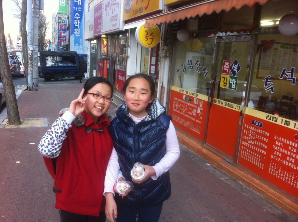 I was planning to cook dinner tonight so I had to run by the store after work to pick up a few things. When I was browsing the ice cream section, two of my 6th grade students spotted me and came over to say hi. I asked them which ice cream was good and they recommended a few. Before they left to go back to their academy (private cram school), I bought them each an ice cream for being so helpful.
