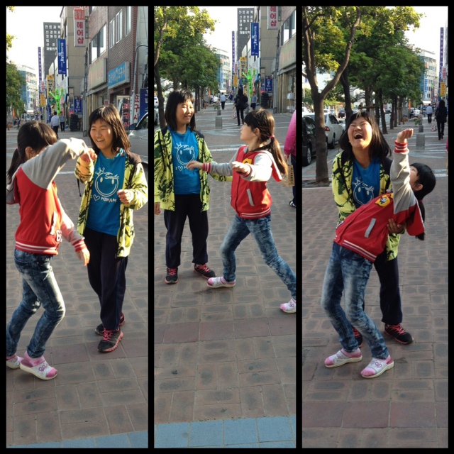 On the walk home I called Shanna and invited myself over. They walked with me all the way there and then told me they needed to come in because they were very thirsty. Then, one of the girls found 1,000 won on the ground (about $1) and gave it to me. I said they could have it to buy a drink because they were so thirsty. They were so excited and went skipping off arm in arm. Phew!