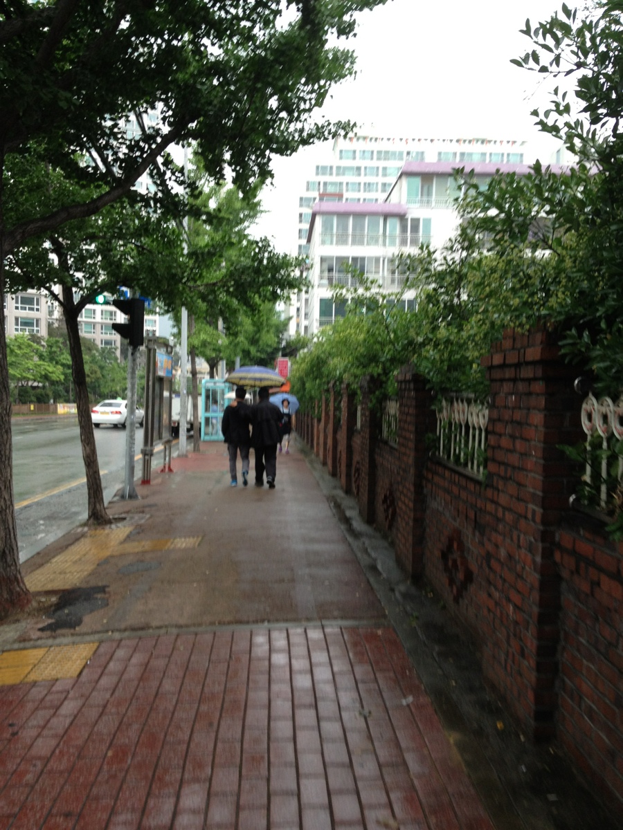 I took this photo as I was walking home from work. It’s two men sharing an umbrella. One of the men has his arm around the other. Touching is a form of familiarity here and it isn’t weird for men to walk with an arm around the other, or even to hold hands.
