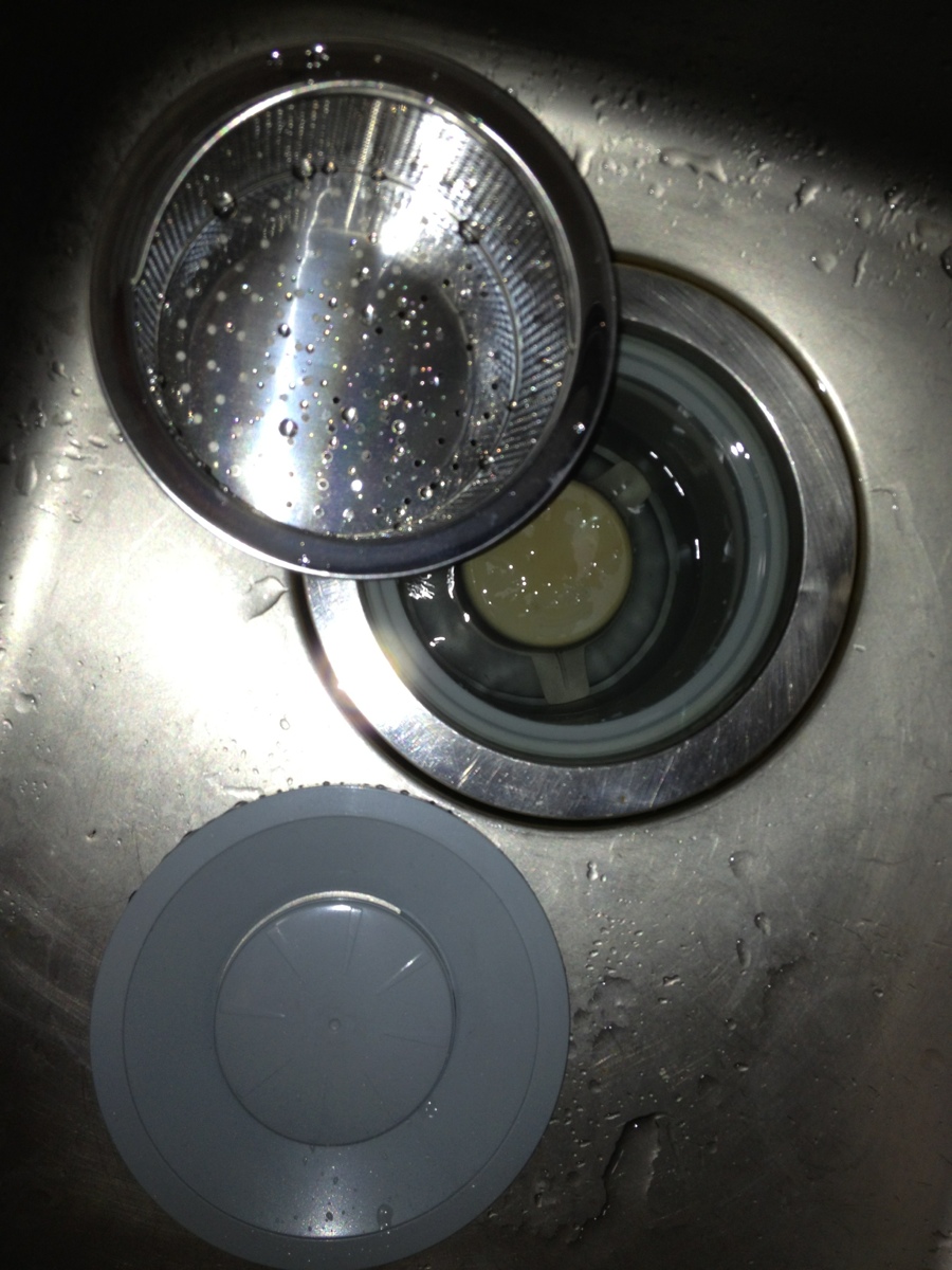 Sinks in Korea are different than the ones back home. One nice thing about them is that there’s a removable basket that catches all of the stuff that would otherwise clog up your sink. The down side is that there’s this tank of water in the bottom that never completely drains. It just stays down there stagnant.
