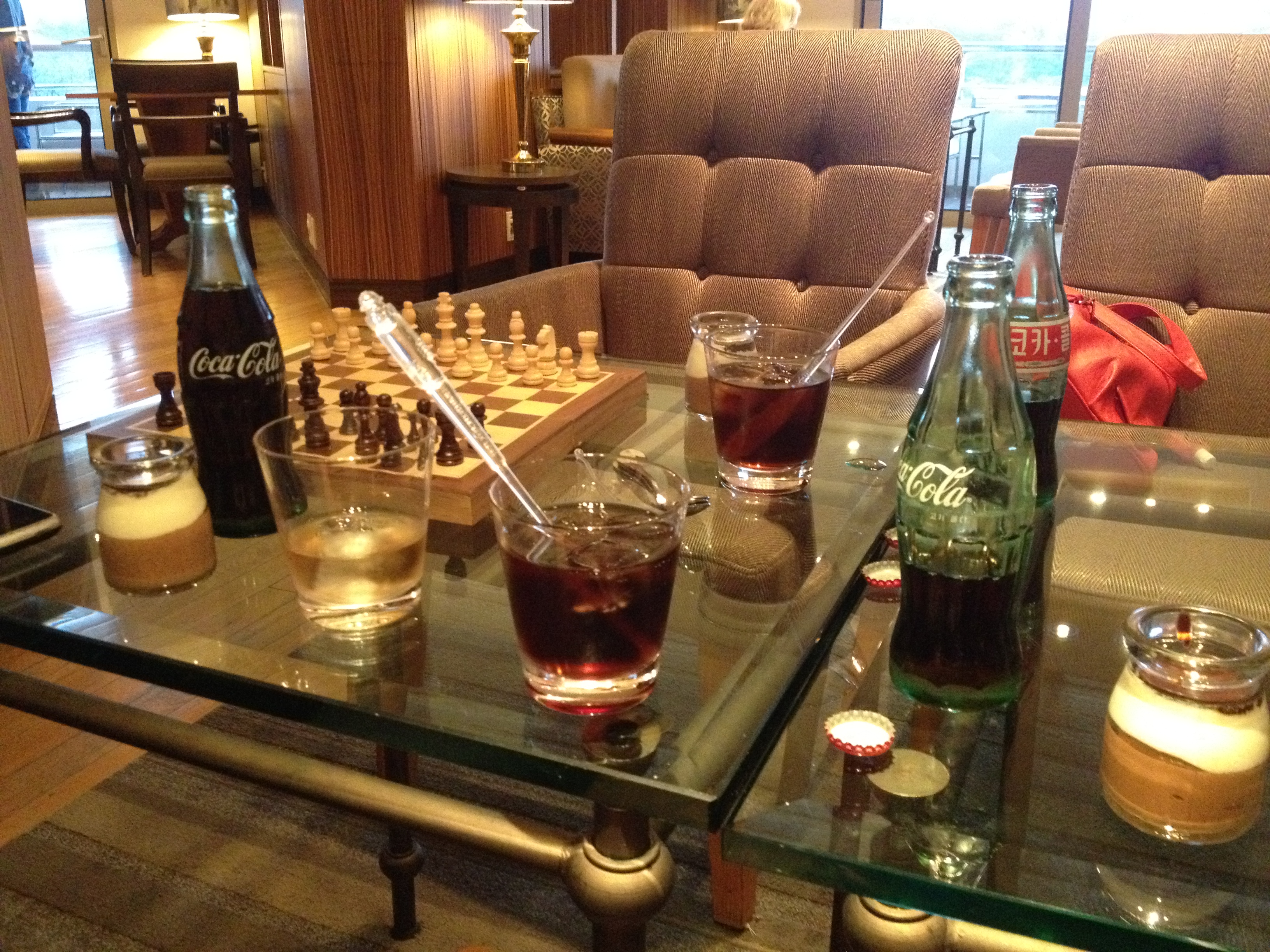 We were lucky enough to be able to access the free happy hour at the hotel so that meant we could enjoy the view and enjoy complimentary drinks and dessert. We all sat around and chatted, and Joni was finally able to challenge Dave to a game of chess.