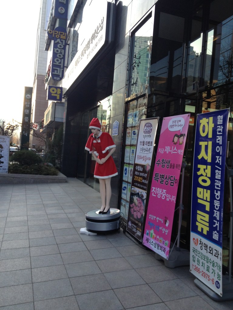 IMG_4705 Published December 21, 2012 at 2448 × 3264 in A year in photos – Days 295-300 This mannequin is motorized and she speaks and bows. She is usually wearing a business suit, but they have dressed her up for the holidays.