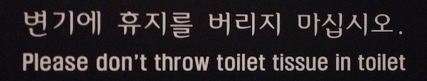 One of my favorite things about Korea is how easy it is to find a clean public toilet. They are almost everywhere, and if all else fails, you can usually use the toilet at any major coffee shop or fast food restaurant. If you can’t find a toilet, here’s how to ask for the bathroom in Korean: Hwa-jahng-shil-ee uh-dee-eh-yo? 화장실이 어디에요? Toilets in Korea