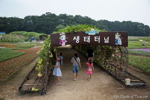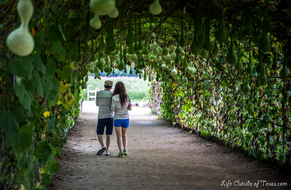 There’s also a really nice tunnel of gourds that you can walk through. The gourds grow up and over the tunnel and hang down from the top. It’s absolutely lovely.