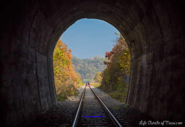 LOVE this! I really want to do this, but for me (as you) it is so far away! But definitely before I leave Korea I will do nami island & rail biking! My favorite photo is as you come out of the tunnel…just gorgeous! The autumn colors are so beautiful.