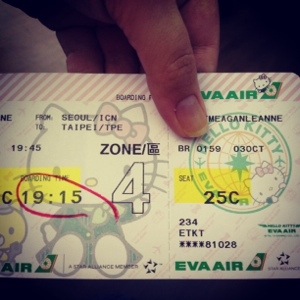 I’m writing this from Incheon International Airport in Seoul, South Korea. Dave and I are heading to Taipei, Taiwan for a long weekend and we are about to board one of the world’s cutest planes! It’s a Hello Kitty plane. Even the boarding passes have the cute little Sanrio diva on them.