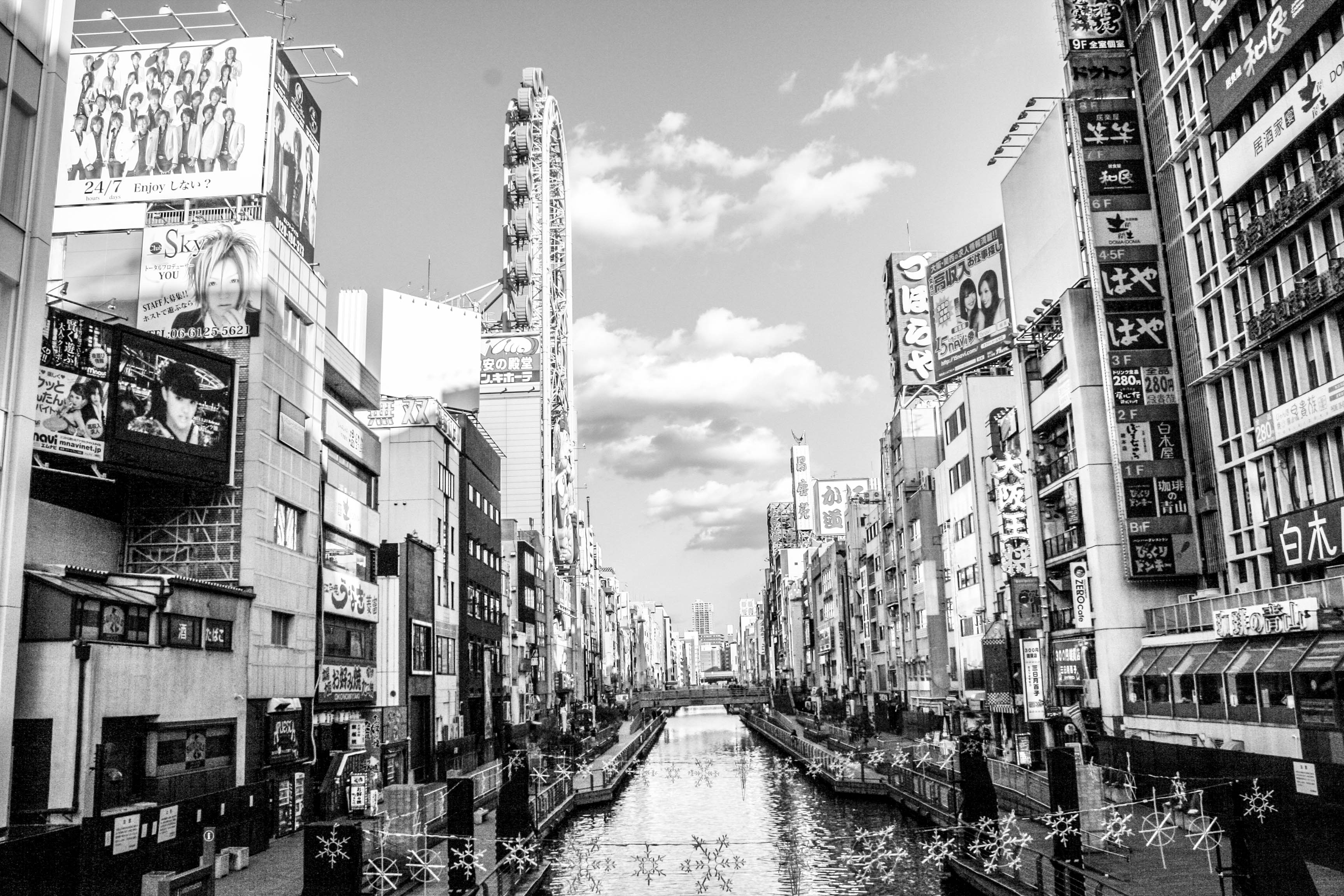 When we were in Osaka, we walked through the shopping district and came across a river. The view was really pretty so we took a few photos. There were a lot of shadows and as novice photographers, it was hard for us to really capture the moment.