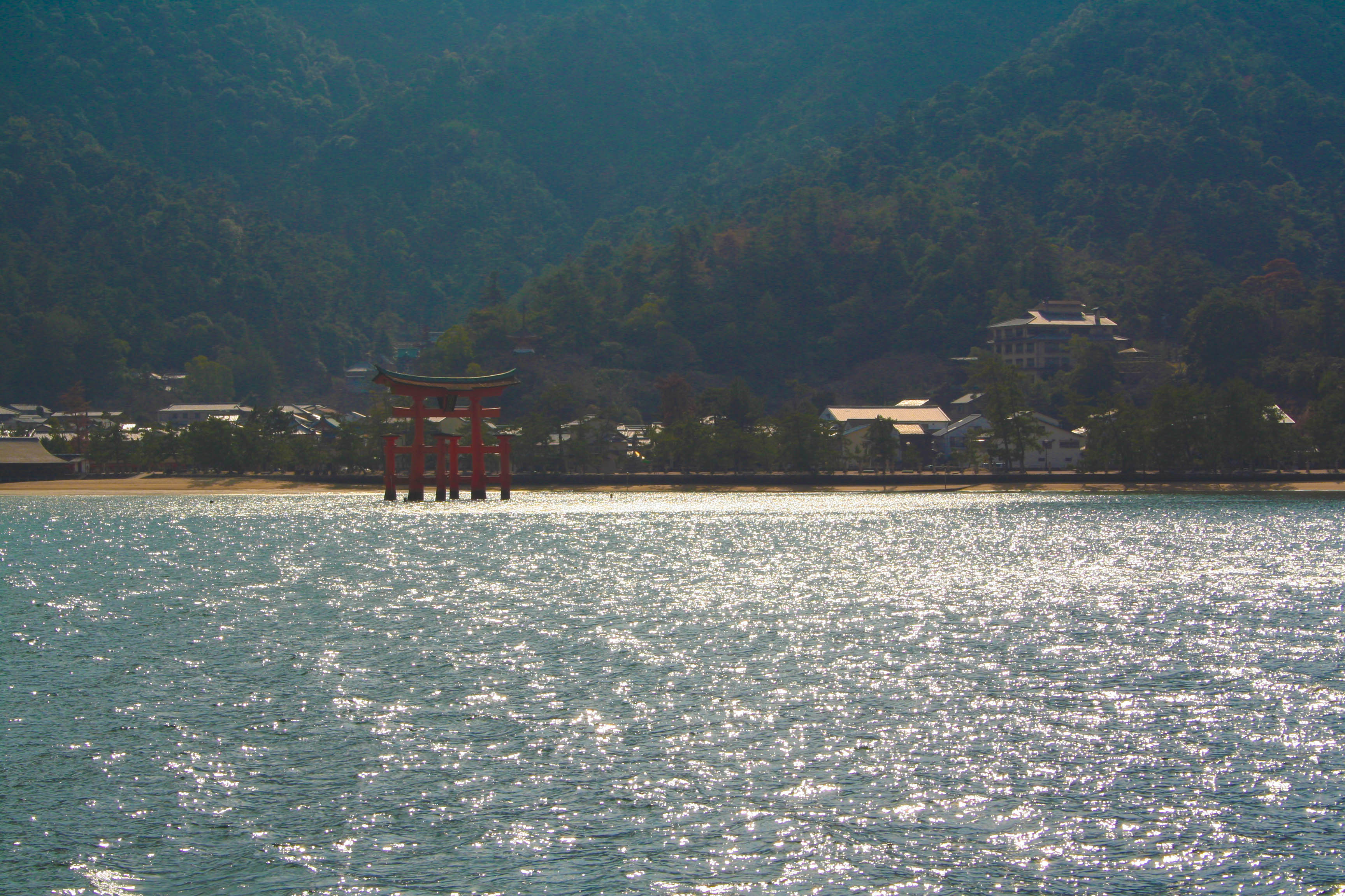 The island is famous for its Floating Torii gate. It gets that name because during high tide it appears to be floating in the water. We had a nice view of the signature orange gate from the ferry. Click on the photos below to see the full size image.