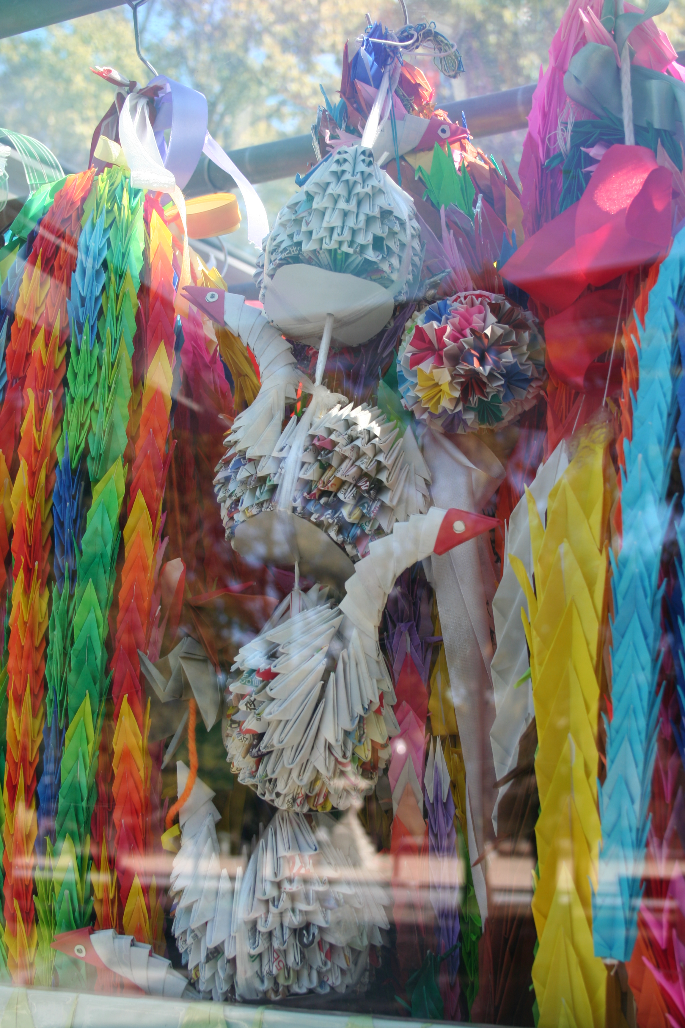 Between the dome and the museum, there was a memorial to the children that lost their lives that day. Thousands of paper cranes had been folded. All of the artwork on the outside of the cases are made with paper cranes. And hanging inside the cases are huge collections of paper cranes. It was a beautiful tribute!
