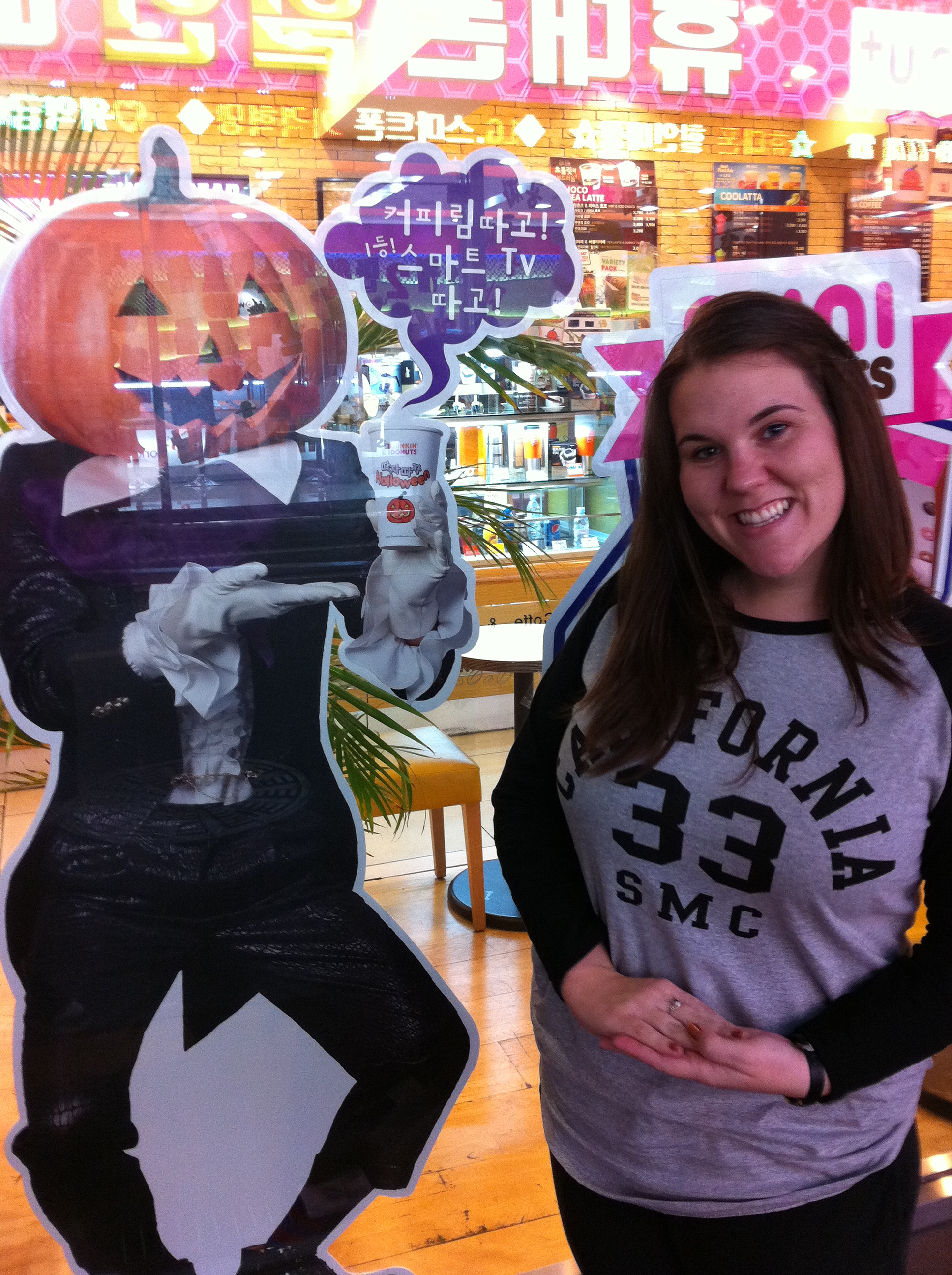 I met up with Megan, Sonal and Grace for dinner at the place we just call “the cheap alley place.” The guy there loves us and always gives us something free (“servicee”) every time we go. This time it was free Cider (soda that tastes just like Sprite). I’m sure they don’t get many foreigners coming in because it’s down a small alley, but we were taken by a Korean friend that had been taken by one of her Korean friends. It’s amazing and sooo cheap. A giant meal will cost you 4,000 won (under $4) or less.
