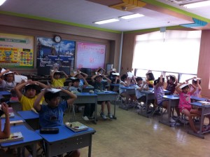Most elementary English teachers in Korea have to teach 3 weeks of summer camp after the regular semester ends. As I previously mentioned, during the first week I taught 1st & 2nd graders. In my school, the students don’t begin learning English until the 3rd grade so this was my first time to teach the little ones. It was a challenge! They are soooo full of energy and their attention span is so short. They were all really excited about camp though. They were always in a good mood and very enthusiastic.