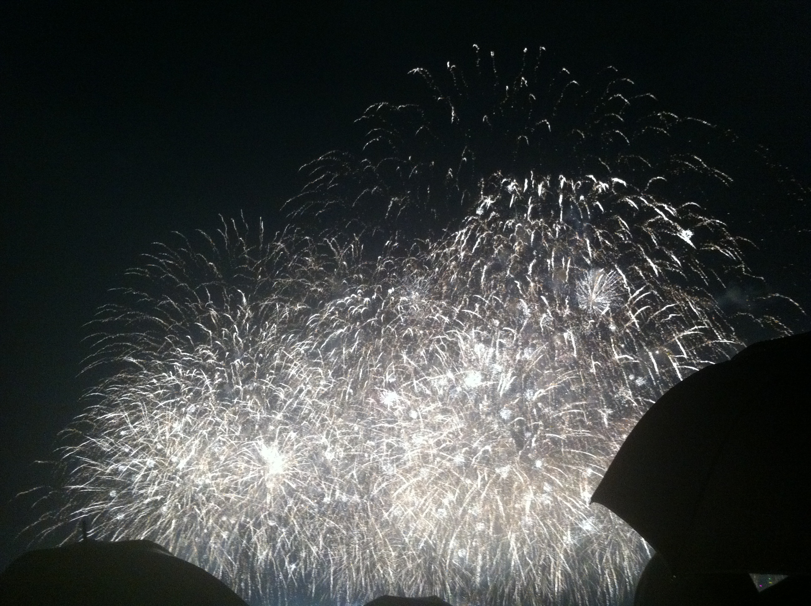 The fireworks were nice, but the weather put a damper on things. It was also a bit hard to see because they didn’t always shoot up very high and there were lots of umbrellas blocking our view.