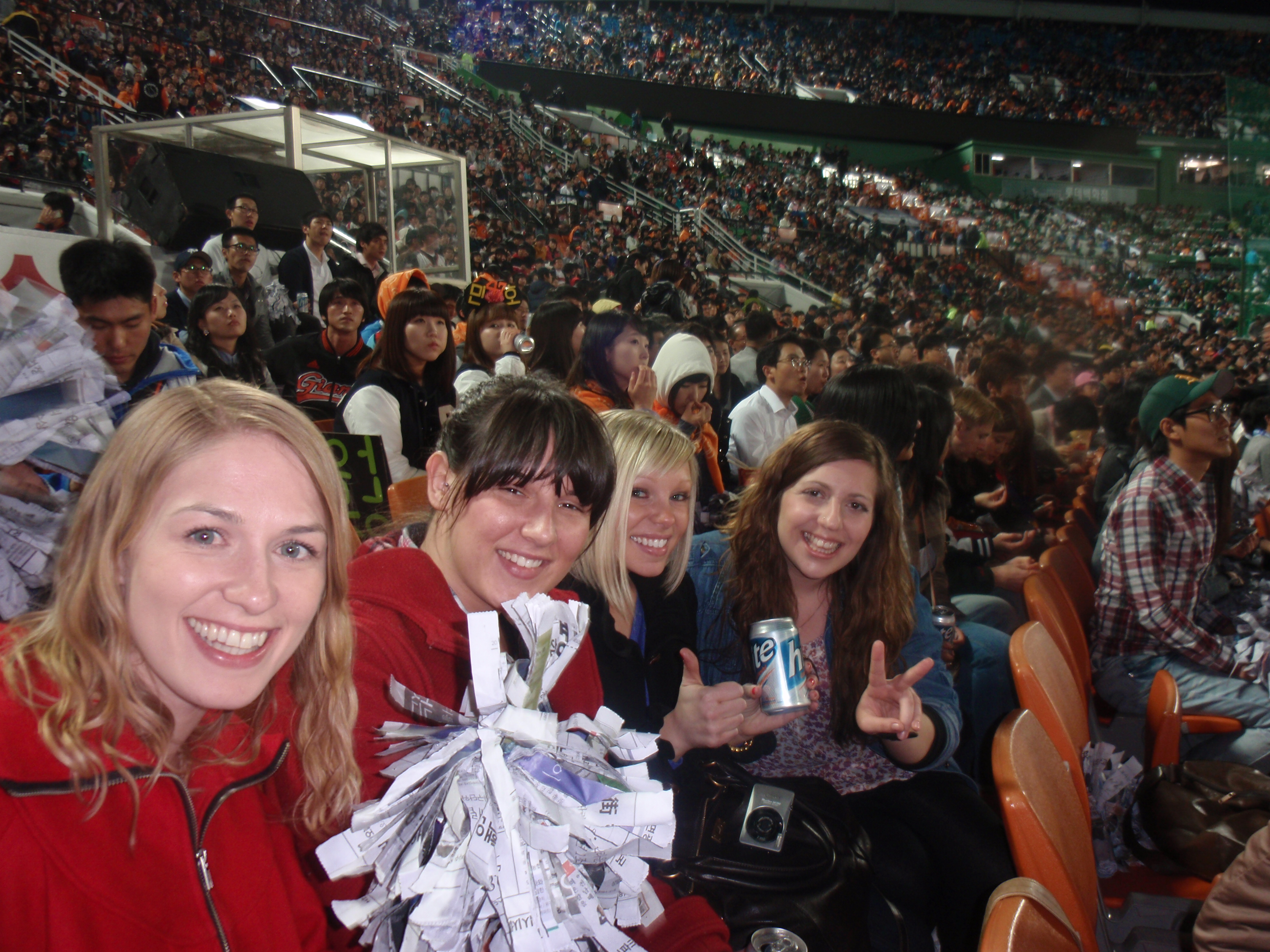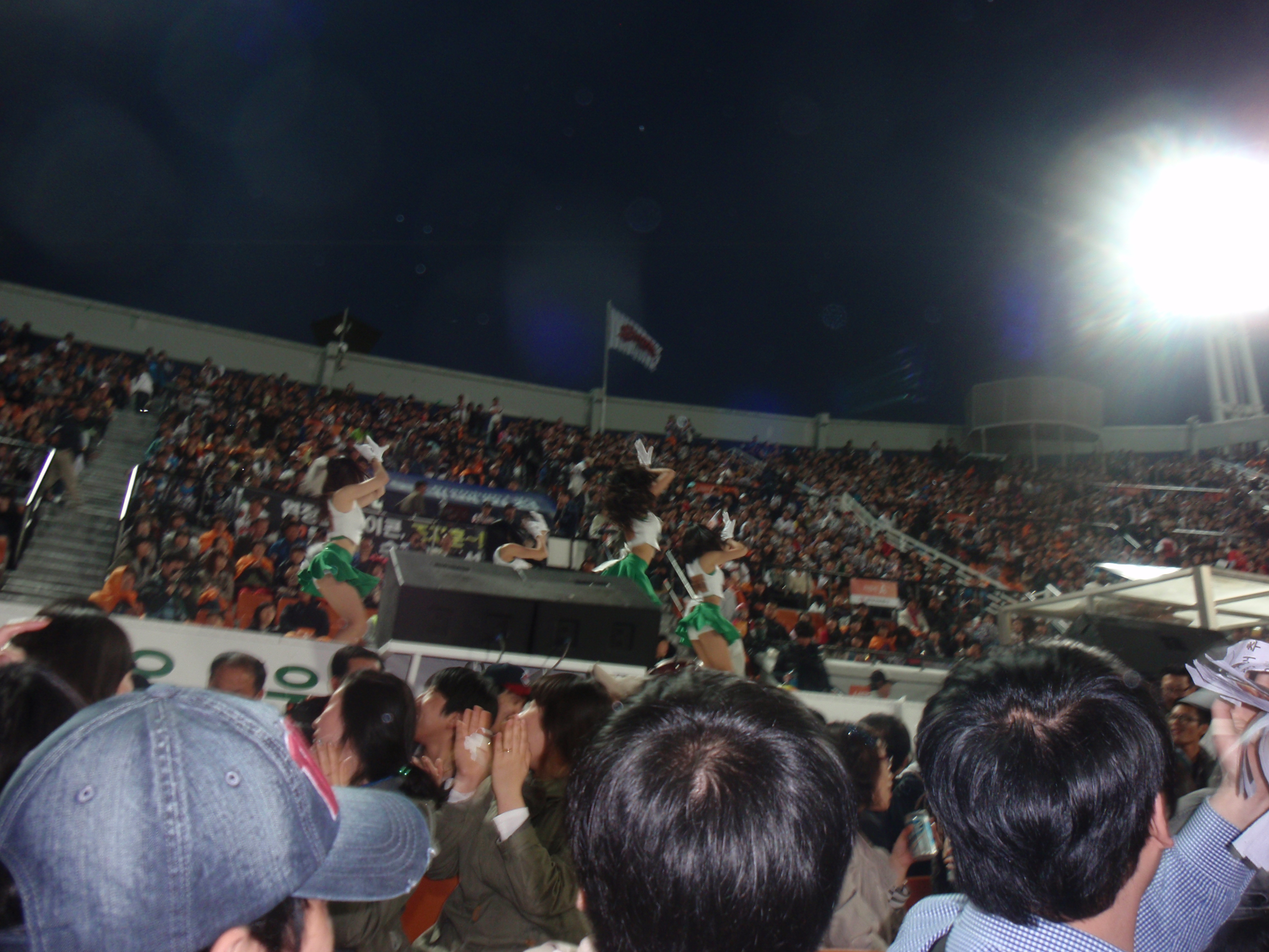 Baseball is very popular in Korea, but Busan is especially famous for baseball and it ‘s not because they have a good team (they have lost 2 of the 3 games I’ve been to). The Busan Lotte Giants are famous for their cheerleaders!
