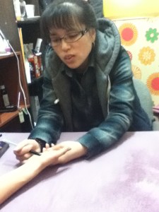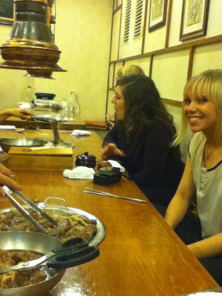 Dinner that night was excellent. We had Korean BBQ. This was my first experience with Korean BBQ and I loved it! After dinner, we popped over to one of the palm reader stands across the street and had our palms read. Obviously, the lady only spoke Korean so we had our Korean friend translate for us. There were 4 of us crammed into the little booth with the palm reader. I can’t really remember what the lady told me other than I was about to come into some luck and that when I get married, I’m going to love my husband more than he loves me! Too funny!