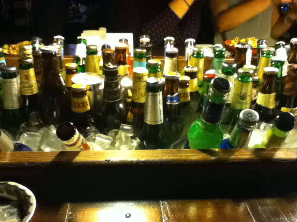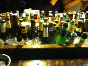 We all headed over to a place called WA-Bar. This place is unique. The bar is actually at your table. There’s a giant selection of beers and wine coolers and you just grab what you want and pay at the end.